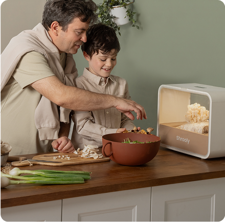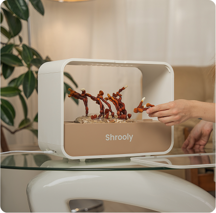 Choose the type of mushroom you'd like to grow from our Growing Pod selection, insert it into Shrooly, and enjoy fresh, homegrown mushrooms.