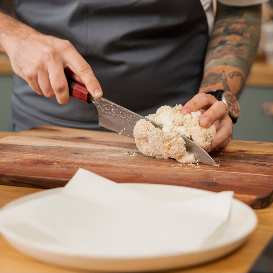 Lion's Mane mushrooms aren't just for the mind—they're for the taste buds too. Known for boosting mental clarity, memory, and cognitive function, this mushroom is a brain-boosting powerhouse. Want to make your own mushroom supplement? Simply dry it out and blend it into a powder. But if supplements aren't your thing, fear not: Lion's Mane is also a gourmet superstar. Cook up a bombastic Lion's Mane steak and enjoy its juicy, meaty texture that'll have your taste buds roaring.